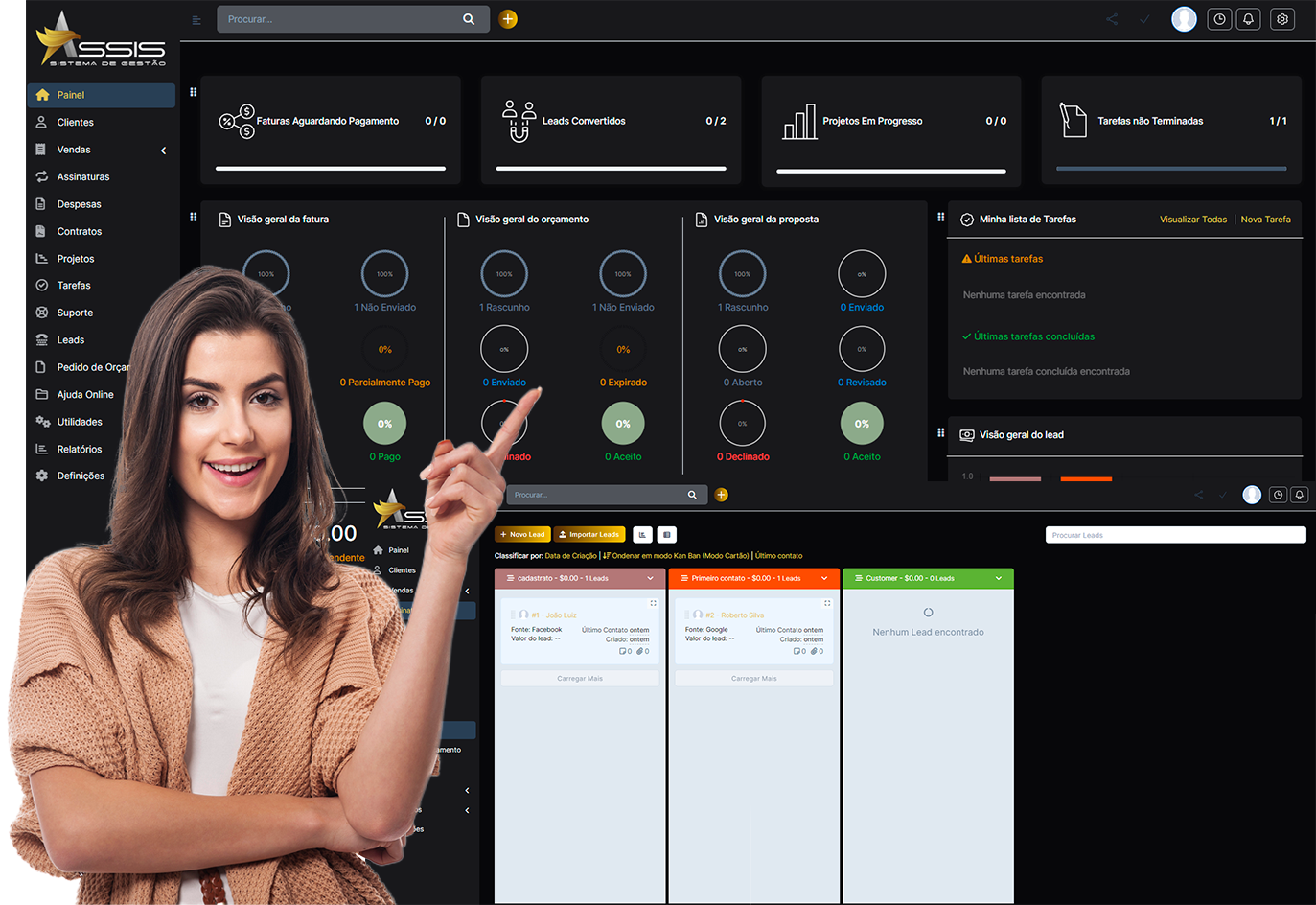 O Assis CRM é uma solução completa para gestão de vendas, marketing e vendas. Ele oferece as seguintes funcionalidades para sua empresa: